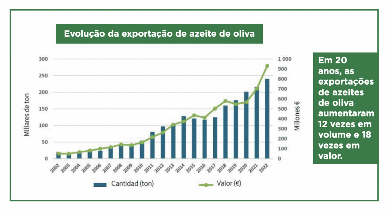 Com mais de 53.000 hectares de olival e 20 lagares que são responsáveis por extrair cerca de 70% do azeite produzido em Portugal, a Olivum não apenas defende os interesses do setor, como também atua como motor de inovação, sustentabilidade e excelência internacional. Portugal registou um crescimento de 320% na sua produção de azeite entre 2000 e 2022, passando de 24.600 para mais de 206.000 toneladas. Este aumento foi acompanhado por uma melhoria notável na qualidade: 98% do azeite português é virgem ou virgem extra, a percentagem mais elevada entre os principais países produtores. Esta qualidade superior deve-se à rápida modernização do olival – modelo em sebe, especialmente no Alentejo – ao uso de tecnologia de rega eficiente e à mecanização generalizada. Portugal já é o sexto maior produtor mundial, e prevê-se que em duas campanhas se posicione entre os três primeiros. Esta projeção é sustentada pelo maior parque industrial moderno de lagares do mundo, com capacidades de moagem líderes em eficiência e volume. Neste contexto, os olivais modernos e mecanizados de Portugal são considerados entre os mais avançados do mundo.
