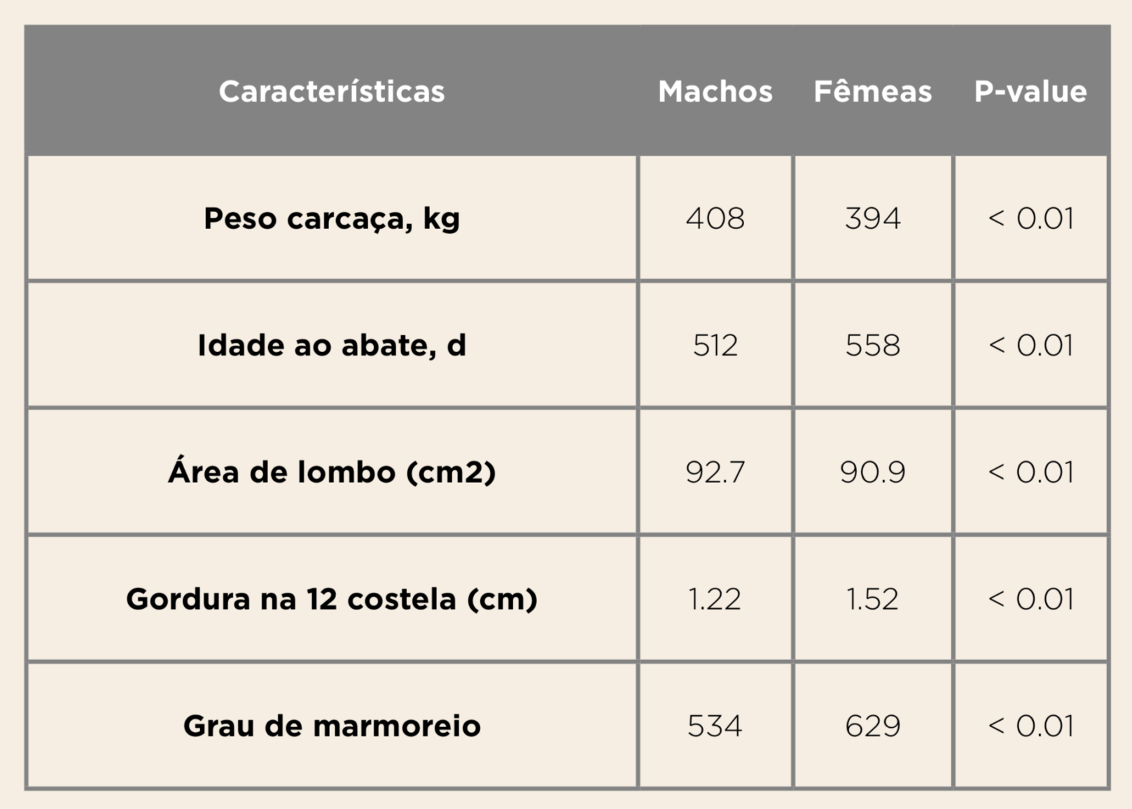 Os machos tiveram idade inferior ao abate, menos gordura intramuscular, mas maior área de lombo.