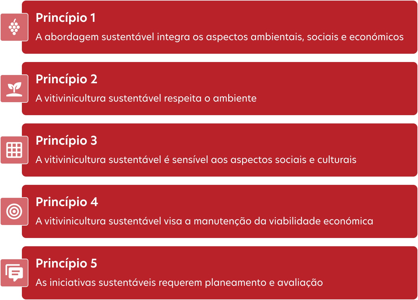 Este Referencial seguiu a Resolução OIV-VITI 641-2020 (GUIA PARA A IMPLEMENTAÇÃO DOS PRINCÍPIOS DA VITIVINICULTURA SUSTENTÁVEL) onde são identificados os principais desafios colocados ao setor vitivinícola na adaptação da abordagem de sustentabilidade: