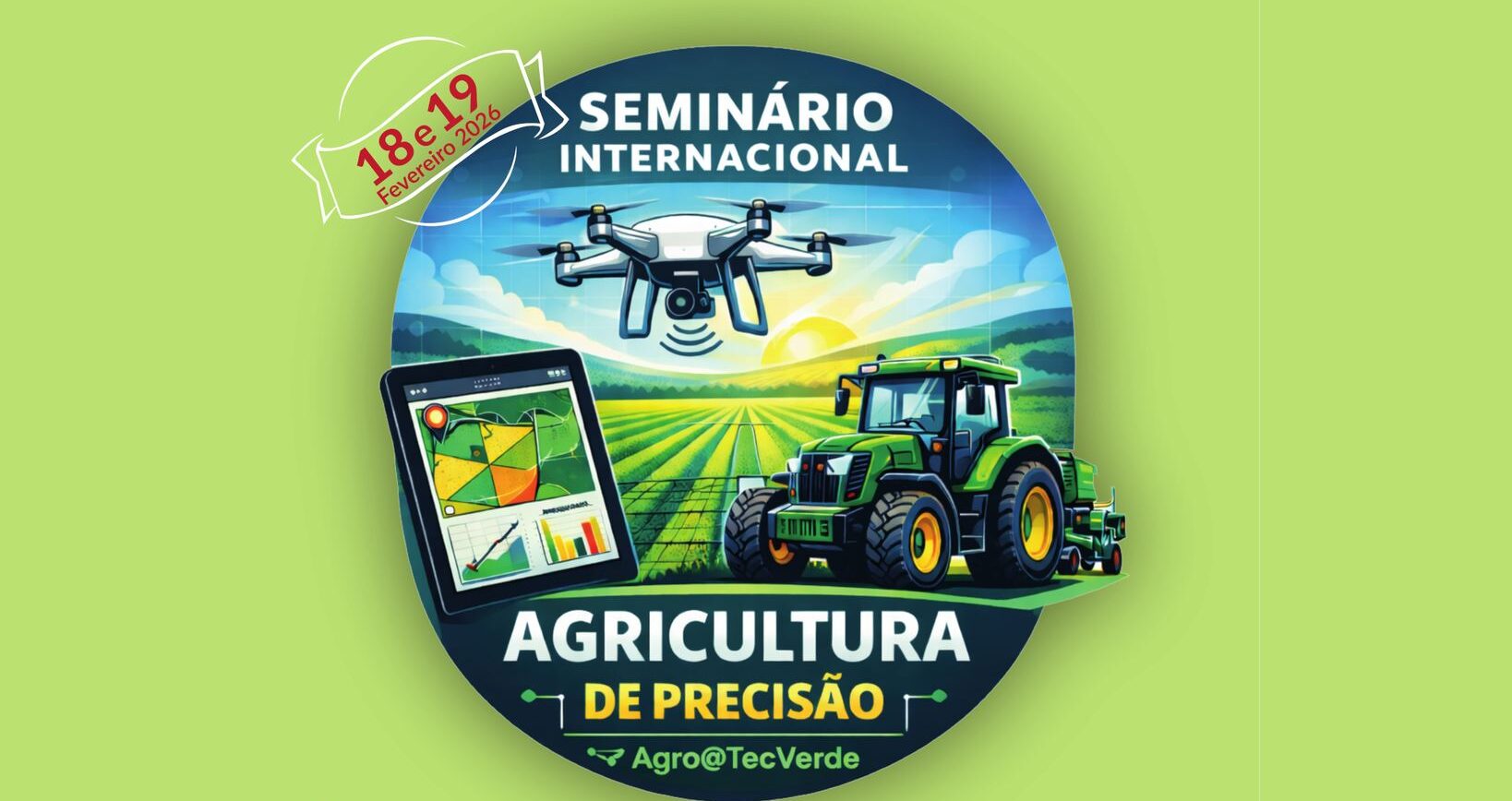 Nos dias 18 e 19 de fevereiro de 2026, realizar-se-á um Seminário Internacional sobre Agricultura de Precisão, no âmbito do projeto Agro@TecVerde, na Escola Superior Agrária de Bragança, no Auditório Dionísio Gonçalves.