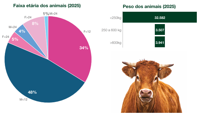 Entre 2024 e 2025, o preço médio de venda dos bovinos registou uma valorização média muito expressiva (≈45–50 %), confirmando 2025 como um ano de forte subida de preços, transversal a todas as categorias de animais.