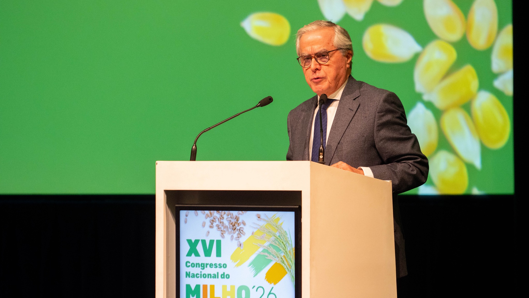 O Ministro da Agricultura, José Manuel Fernandes, durante o seu discurso abordou a reprogramação do PEPAC, destacando medidas de apoio à produção de milho e cereais.
